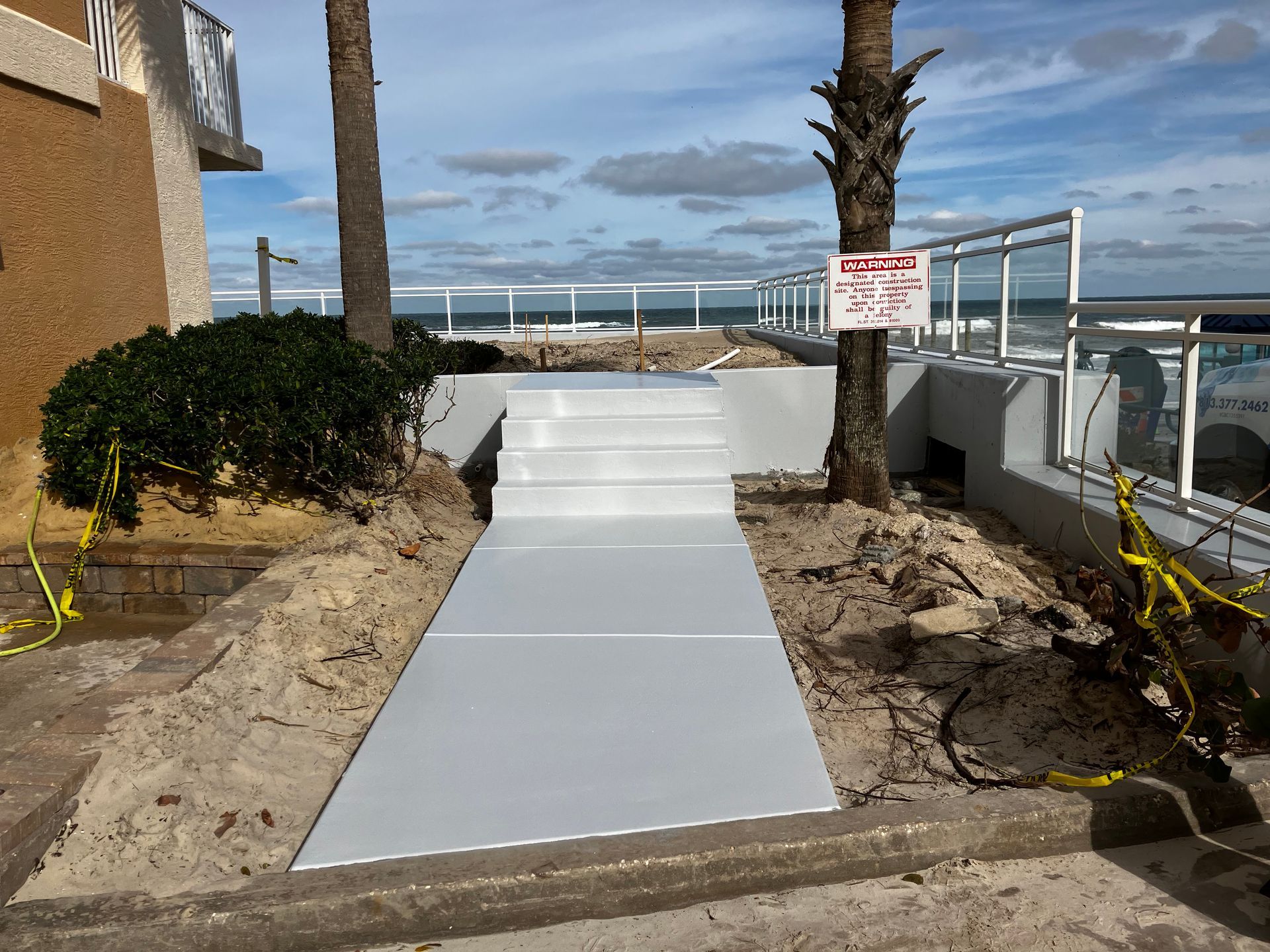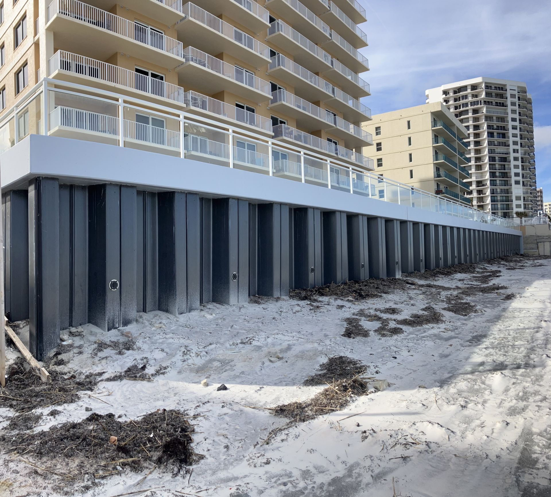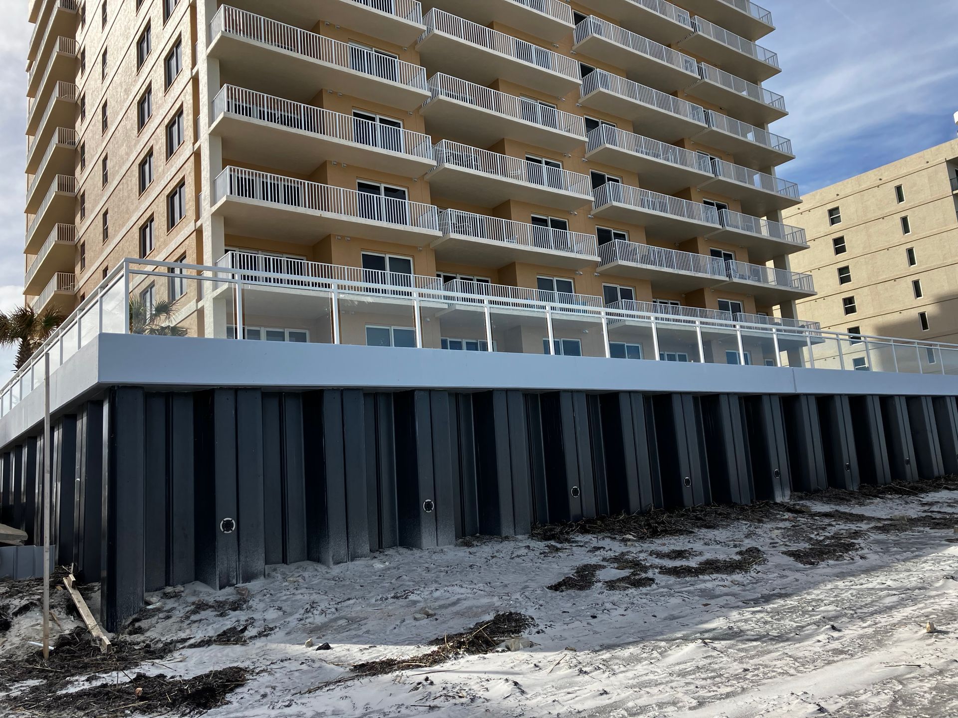 The DiMucci Towers were hit by hurricanes Ian and Nicole in 2022 washing nearly a third of their property into the ocean. Their twelve foot high seawall of 50 years was gone leaving the building completely exposed to the sea. Enter Florida Seawall Solutions to replace the 400 foot long wall with a new state-of-the-art, high tech wall.