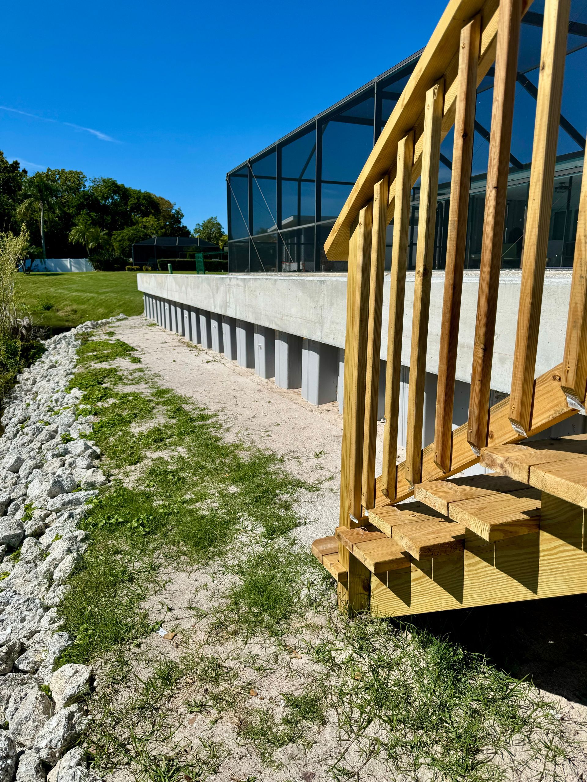 FSS installed under the right conditions an 80 foot vinyl seawall. While installing the seawall they ran into multiple complications they were able to solve and work through. Including voids under the neighboring foundation. To solve this issue FSS added concrete to the neighbor's foundation as well to ensure there would not be any future erosion to the Weir residence.