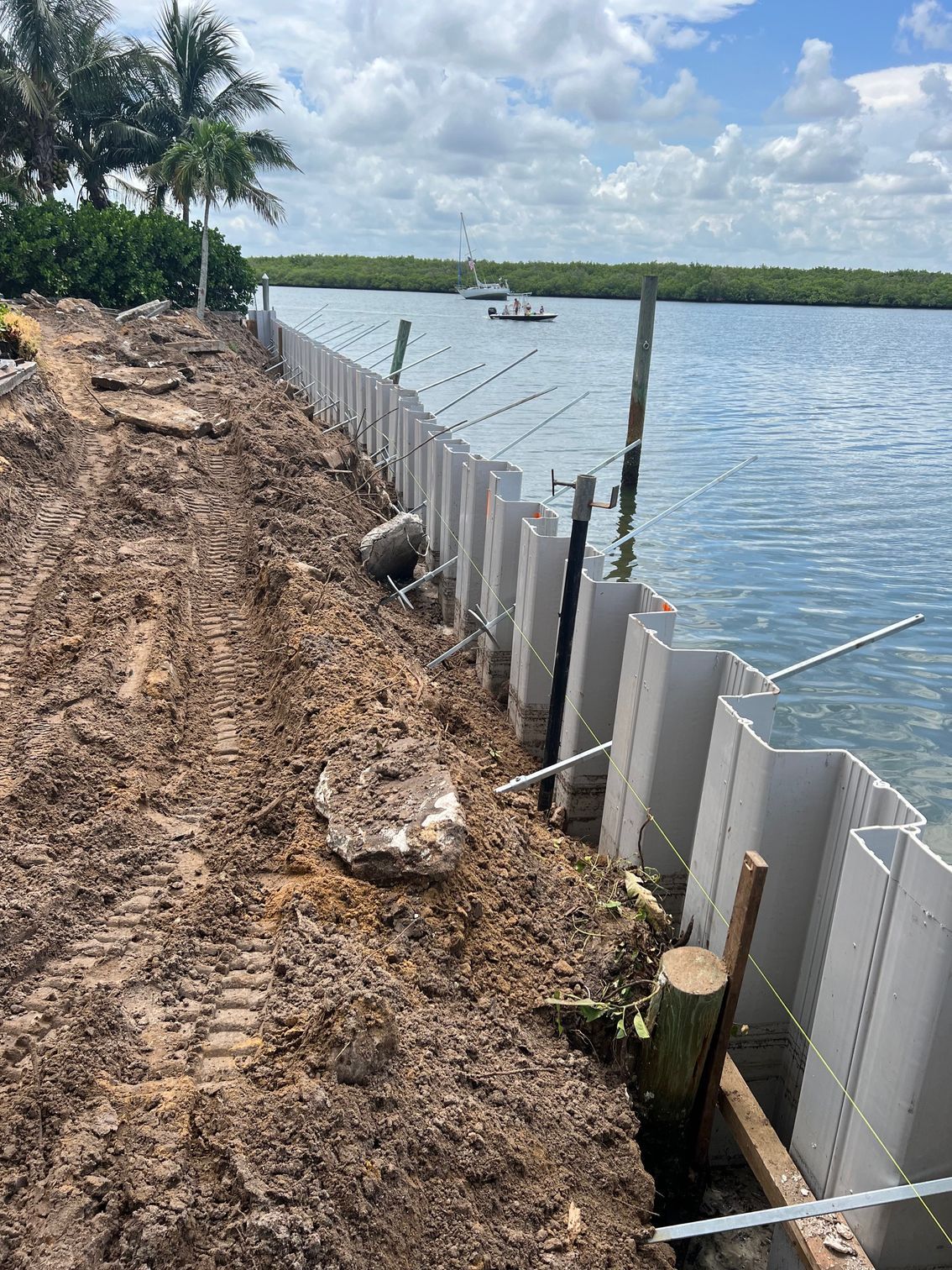 The customer's previous seawall had been wiped out due to Hurricane Ian. They reached out to FSS to remove their old wall and replace it with a new 90 foot vinyl seawall.